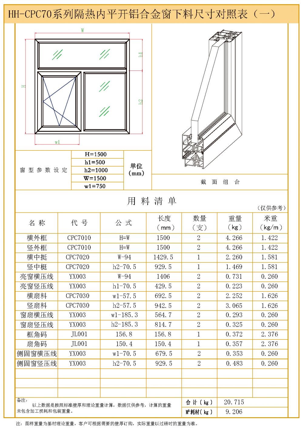 HH-CPC70系列隔熱平開(kāi)(門(mén))窗