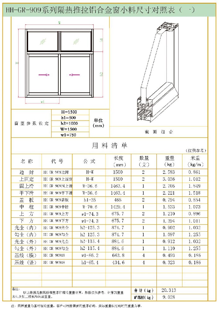 HH-909系列隔熱推拉窗