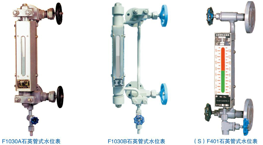 石英管式單色水位表根據(jù)設(shè)計(jì)時(shí)間和壓力等級(jí)不同分為:F1030A型、F1030B型、F303-24型、F303-29型、F401型。